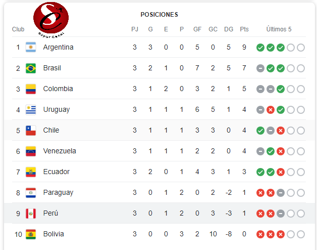 Brasil igualo con Venezuela 1-1,Chile se impuso a Perú 2-0, Argentina derrotó a Paraguay Por la minima 1-0.