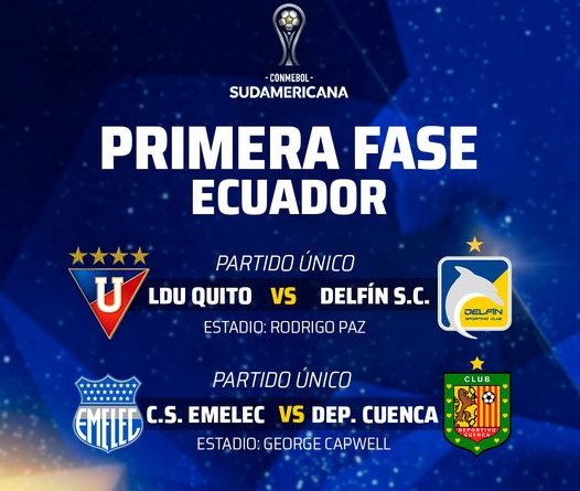 El torneo sudamericano de fútbol organizado por Conmebol esta listo y en la primera fase se eliminaran entre locales en partido único, en este sentido en lo que respecta a la llave ecuatoriana se jugará en Quito y Guayaquil.