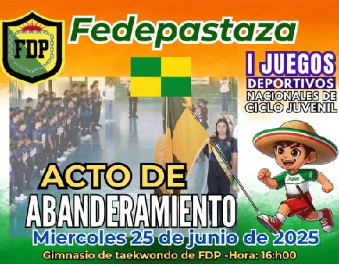 La tarde de hoy miรฉrcoles 25 de junio a partir de las 16h00 se realizarรก el abanderamiento a los deportistas que participaran en los primeros juegos nacionales de Ciclo Juvenil que se desarrollarรก en Manabรญ.