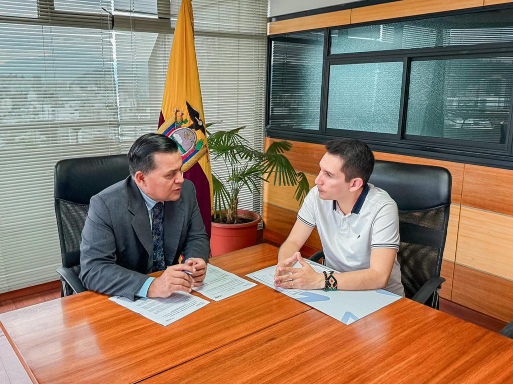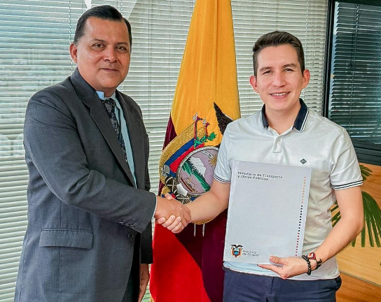 Se firmรณ el convenio interinstitucional entre el prefecto Andrรฉ Granda y el viceministro de Transporte y Obras Pรบblicas, Alex Villacrรฉs, para la intervenciรณn en este tramo clave de Pastaza.