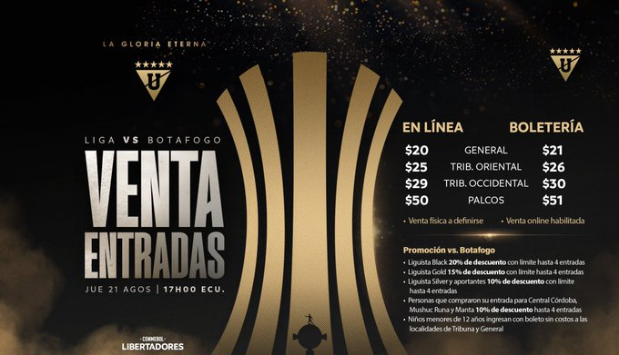 Liga de Quito habilitรณ la venta de entradas de manera digital para el encuentro contra Botafogo de Brasil, por los octavos de final de la Copa Libertadores 2025.