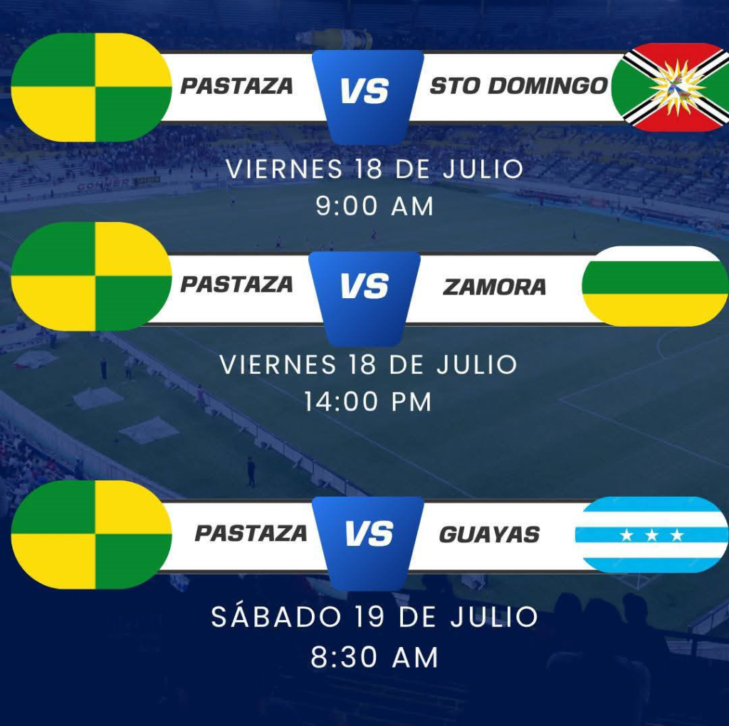 Sus rivales serán Zamora Chinchipe, Santo Domingo y Guayas, Pastaza conforma el grupo «C» e iniciará enfrentando a Santo Domingo de los Tsáchilas en el coliseo de la Sagrada Familia este viernes 18 de julio a las 9h00.