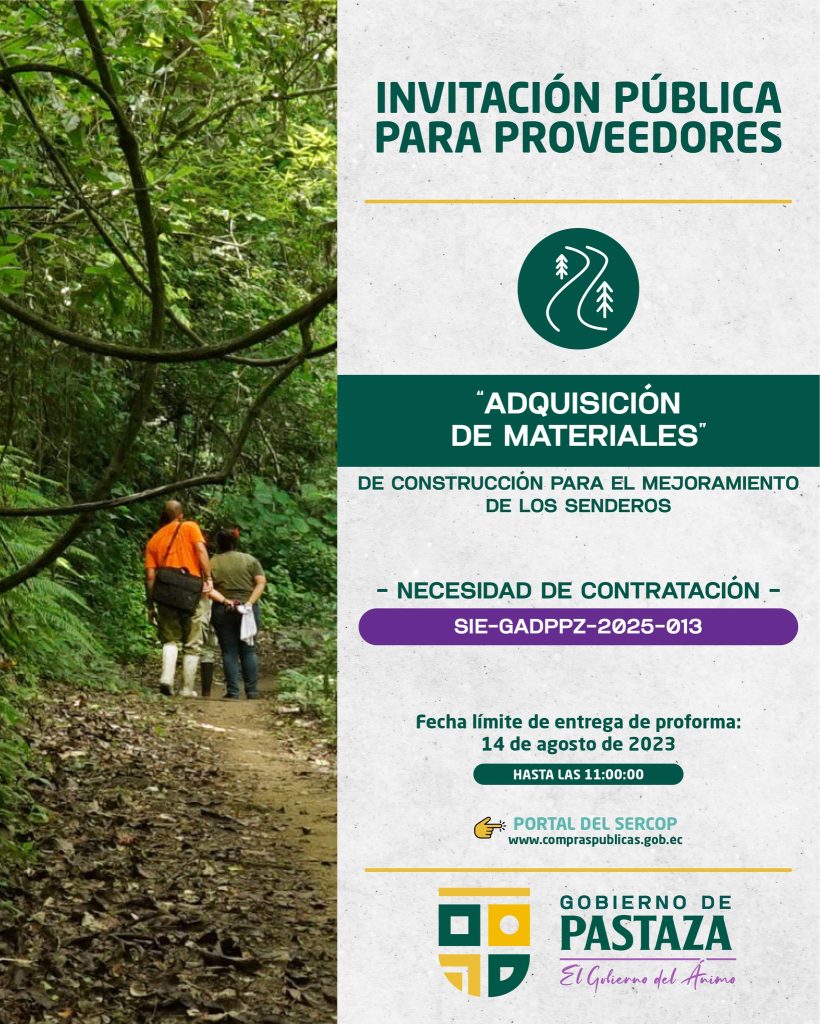 Link para participar: https://www.compraspublicas.gob.ec/…/informacionProceso…