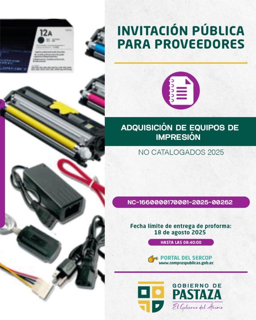 El Gobierno de Pastaza, comprometido con la transparencia en cada proceso, abre la convocatoria para la Adquisición de equipos de impresión no catalogados 2025 🖨️📄